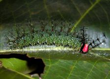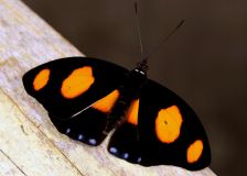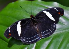 Una de las curiosidades de esta especie de mariposa que la hembra y el macho adultos son marcadamente diferentes en sus colores. Las alas de los machos son negras con seis puntos de color naranja en la superficie dorsal, en cambio, las hembras son de color negro con una banda amarilla en el centro de las alas anteriores.