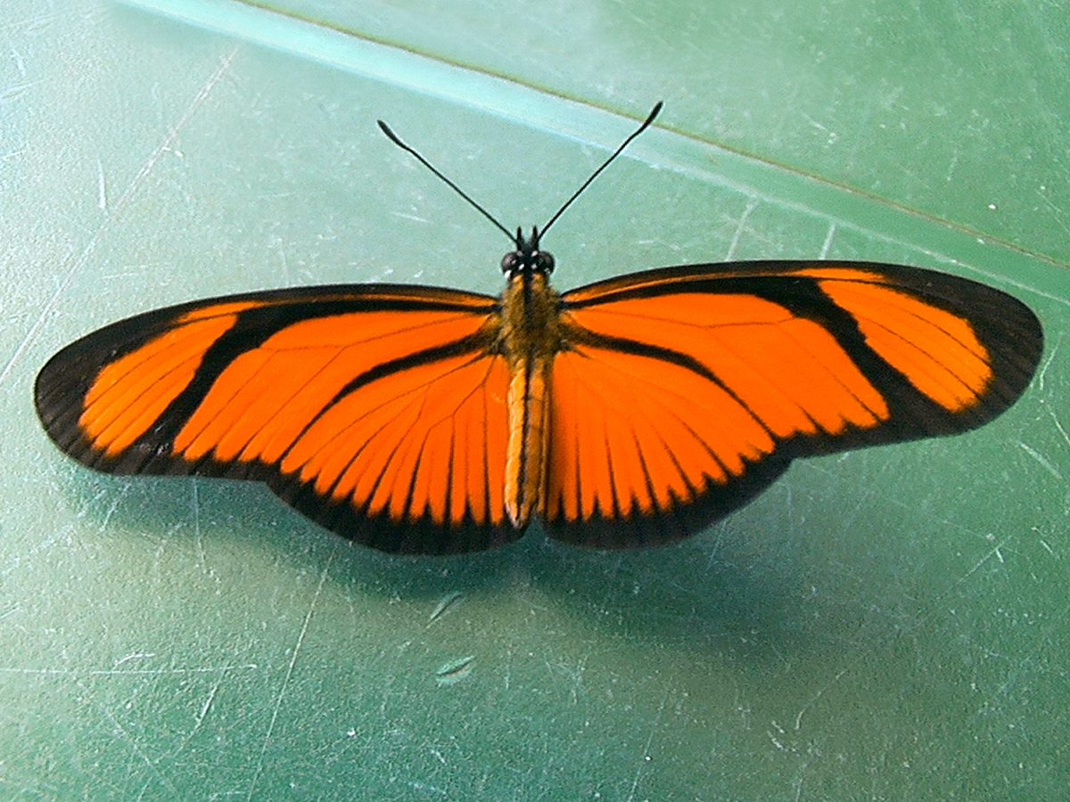 Su forma estilizada y sus colores brillantes no solo la hacen hermosa: también funcionan como señales de advertencia para depredadores, ya que imita a otras mariposas tóxicas de su misma subfamilia.