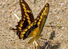 La mariposa cometa golondrina gigante es una atractiva mariposa relativamente común en los meses de febrero y marzo. Posee una cola grande, incluso comparada con otras especies “colas de golondrina”. En la parte superior de las alas se distinguen bandas de manchas de color amarillo intenso, que se entrecruzan sobre un fondo marrón oscuro. Alcanza entre 10 y 13 cm de envergadura.