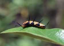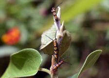 Ponen huevos en plantas del género Ficus. Las orugas son muy peculiares: en su cuerpo presentan colores café-anaranjado, blanco-crema y cuatro prolongaciones negras en el dorso. En la cabeza, que es de color anaranjado tiene dos grandes antenas. La crisálida es de color amarillo claro con puntos y prolongaciones negras.