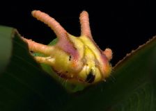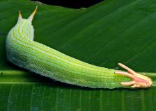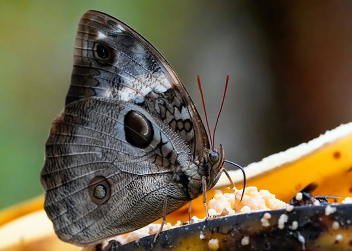 En esta ocasión presentamos una mariposa muy interesante: la mariposa búho del plátano, a cuya oruga se le conoce como “dragoncito verde del plátano”, por el par de cuernos cefálicos que le dan su aspecto característico.