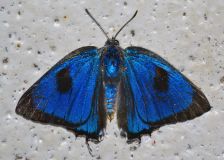 Las mariposas adultas miden entre 3 y 4 cm. Como mencionamos, las alas superiores tienen color azul iridiscente con bordes negros; en cambio, la parte inferior es plateada opaca o marrón grisáceo, con una línea media blanca bordeada de negro cerca de la cola. Al volar en claros y bordes de bosques (principalmente bosques de encinos), se puede apreciar un destello azul brillante. Los adultos se alimentan del néctar de diversas flores, como Asclepias curassavica, Salvia sp., Hamelia patens, Dahlia, Lantana camara y varias leguminosas de flores amarillas principalmente, entre muchas otras plantas con flores.