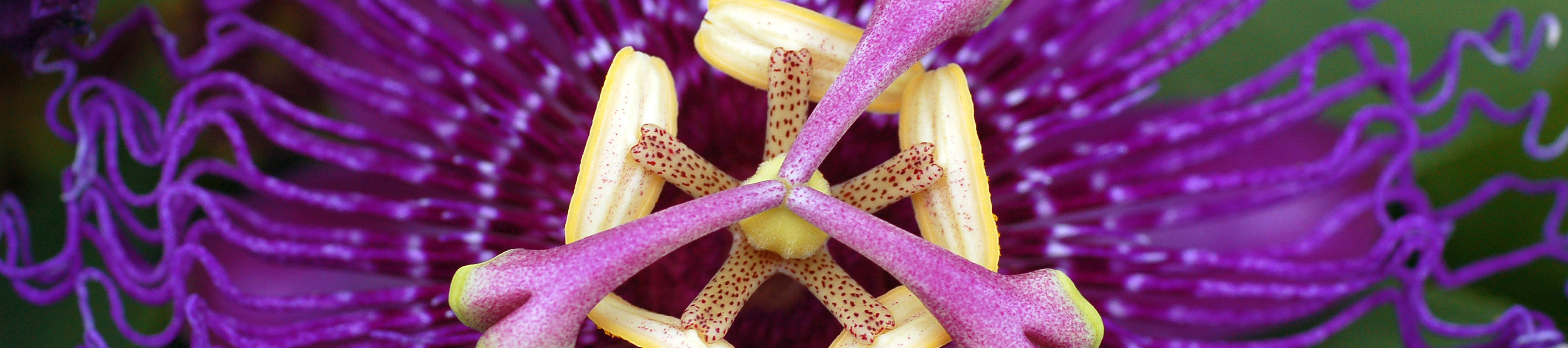 Las flores de las pasifloras son verdaderas obras maestras naturales. Presentan un hipantio (tubo floral) que sostiene a los sépalos, a los pétalos y una vistosa corona formada por uno o varios anillos de filamentos de colores intensos. Dentro de la corona, una serie interna llamada opérculo cubre la cámara donde se encuentra el néctar.