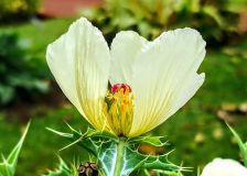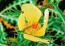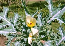 Argemone mexicana es una planta herbácea espinosa, vistosa y con flores amarillo pálido o amarillo brillante, compuestas de 3 sépalos con cuernos elongados y una corola doble. Estas flores resaltan ante el fondo compuesto de la planta, donde tanto el tallo como las hojas son pálidas (glaucas) y espinosas. Hojas y tallo tienen cierta coloración blanco-azulada, que contrasta con las flores. El cardo santo es otra de las plantas que puede embellecer nuestros jardines. Florece en primavera, entre marzo y abril.