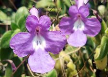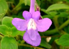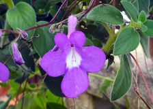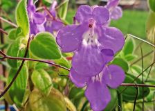 Sus atractivas y numerosas flores crecen dispuestas en inflorescencias axilares y tienen forma de trompeta con tamaño de 3 a 5 cm. Poseen 5 sépalos pequeños, con pequeños pelos la parte externa y en el interior, estos últimos glandulares. La corola mide de 3-4 cm de longitud y es de un vistoso color violeta, muy semejantes a las verdaderas violetas africanas. Su mayor floración ocurre en primavera y verano, pero en regiones tropicales con inviernos suaves, puede florecer todo el año. Los frutos son cápsulas alargadas, retorcidas, de 3-5 cm de longitud y unos 3 mm de diámetro.