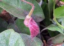 Aristolochia veracruzana es una de esas sobresalientes especies mexicanas con flores de formas. Las flores son de color púrpura, y tienen una forma irregular muy singular. Las hojas son de color verde claro, elípticas de 10-23 cm de largo por 4-12 cm de ancho. En el Jardín Botánico florece en primavera, pero en su hábitat la floración está reportada de julio a enero. Curiosamente, las flores aparecen principalmente en la base de los brotes por encima del nivel del suelo, para atraer a los polinizadores. Estas flores despiden un aroma semejante al de los hongos que brotan en terrenos húmedos; de hecho, atrae a los mosquitos de los hongos, que quedan atrapados en la flor al entrar en un hueco más grande detrás de un bulto pronunciado. Una particularidad de las flores de Aristolochia veracruzana es que presentan una estructura llamada ginostemo, formada por la unión de 3 lóbulos de los estigmas y 6 estambres.