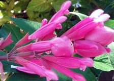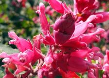 Las flores son alargadas y grandes, de 2.5 a 8 cm de largo, muy atractivas para insectos polinizadores y colibríes. La planta se propaga por semilla, pero es muy fácil propagarla utilizando tallos (estacas) de plantas jóvenes.