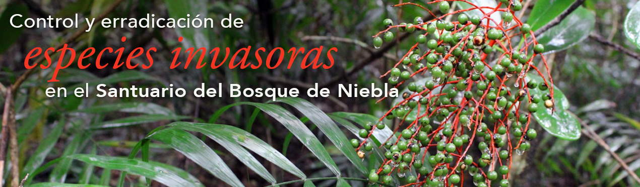 Por tal motivo y de acuerdo con los objetivos del programa de manejo de esta reserva ecológica, se ha iniciado un programa de control y erradicación de especies exóticas e invasoras en el Santuario de Bosque de Niebla, comenzando con el control y remoción de la palma Chamaedorea tepejilote, que ya ha invadido diversas y extensas zonas del lugar, con el consecuente empobrecimiento de la biodiversidad del sitio y el impacto negativos en la oferta de alimento para la fauna que ahí habita.