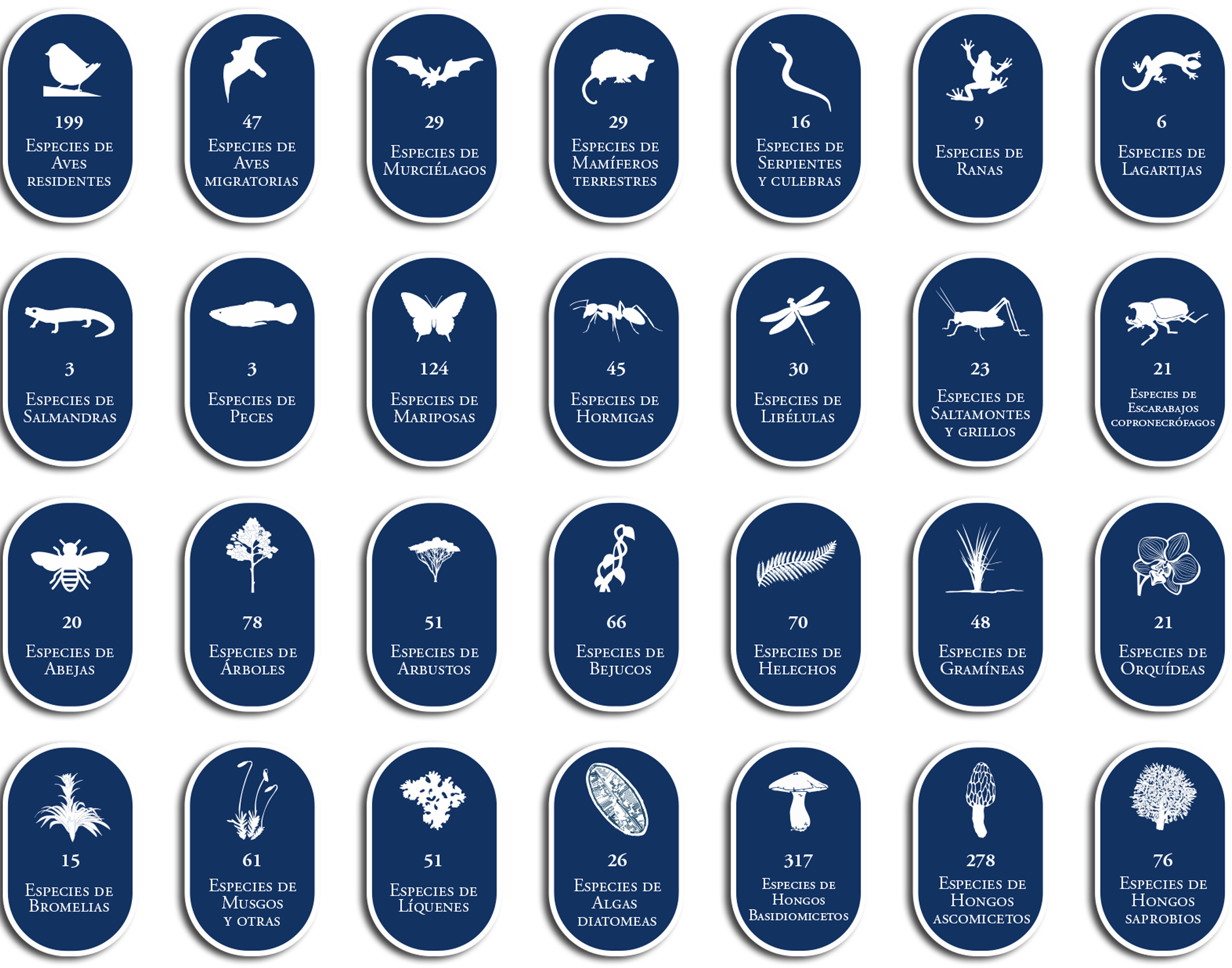 Cada especie es única: algunas de gran tamaño y fácilmente observables, otras diminutas y difíciles de ver, pero extraordinarias por sus vistosos colores, o bien son tan discretas que se camuflan con el entorno. En otros casos podrás escuchar sus cantos o encontrar huellas, plumas, quizá huesos, frutos, semillas u otros restos. Todos forman el tesoro protegido en este espacio natural.